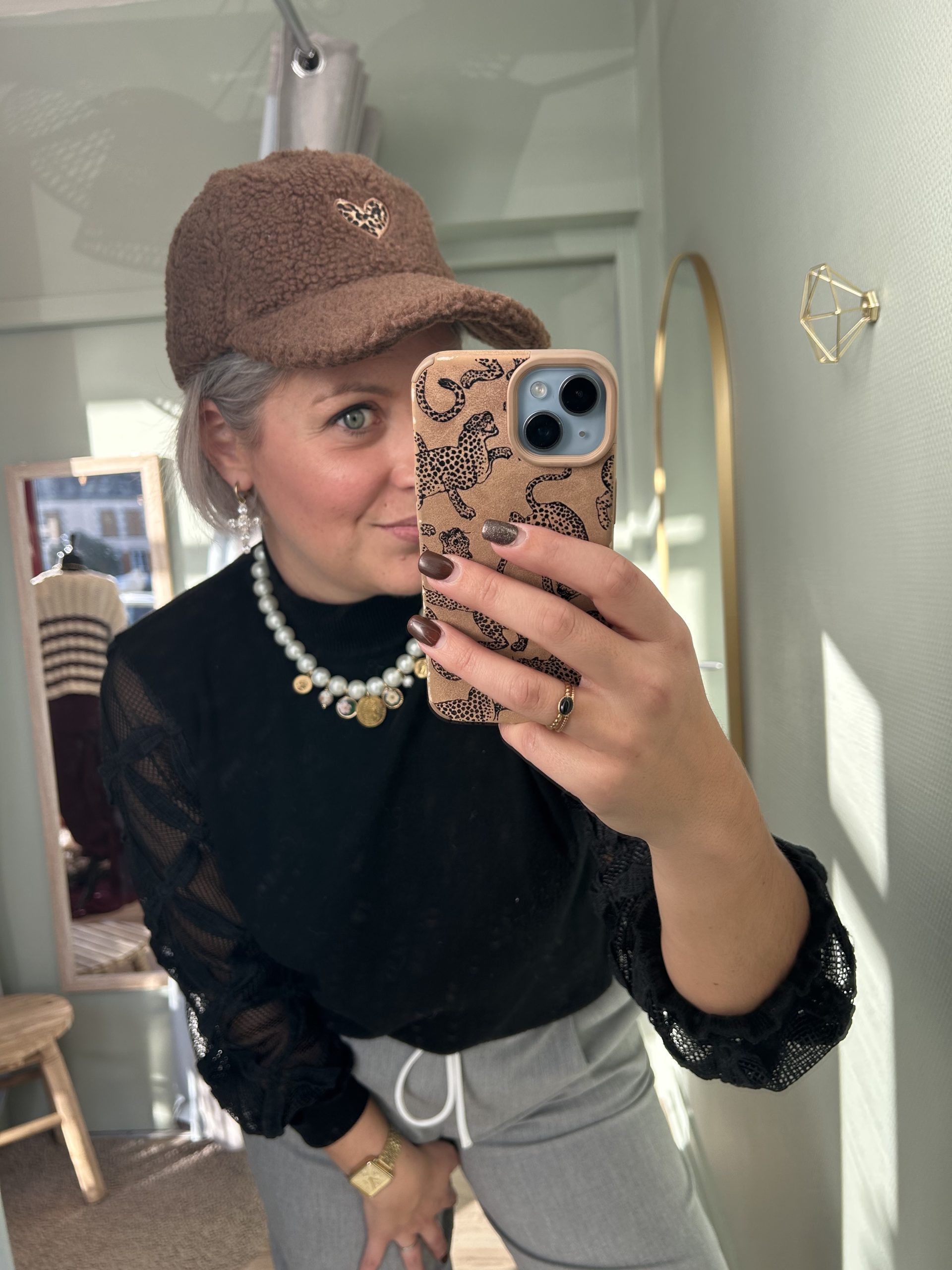 Casquettes bouclettes avec détails coeur léopard