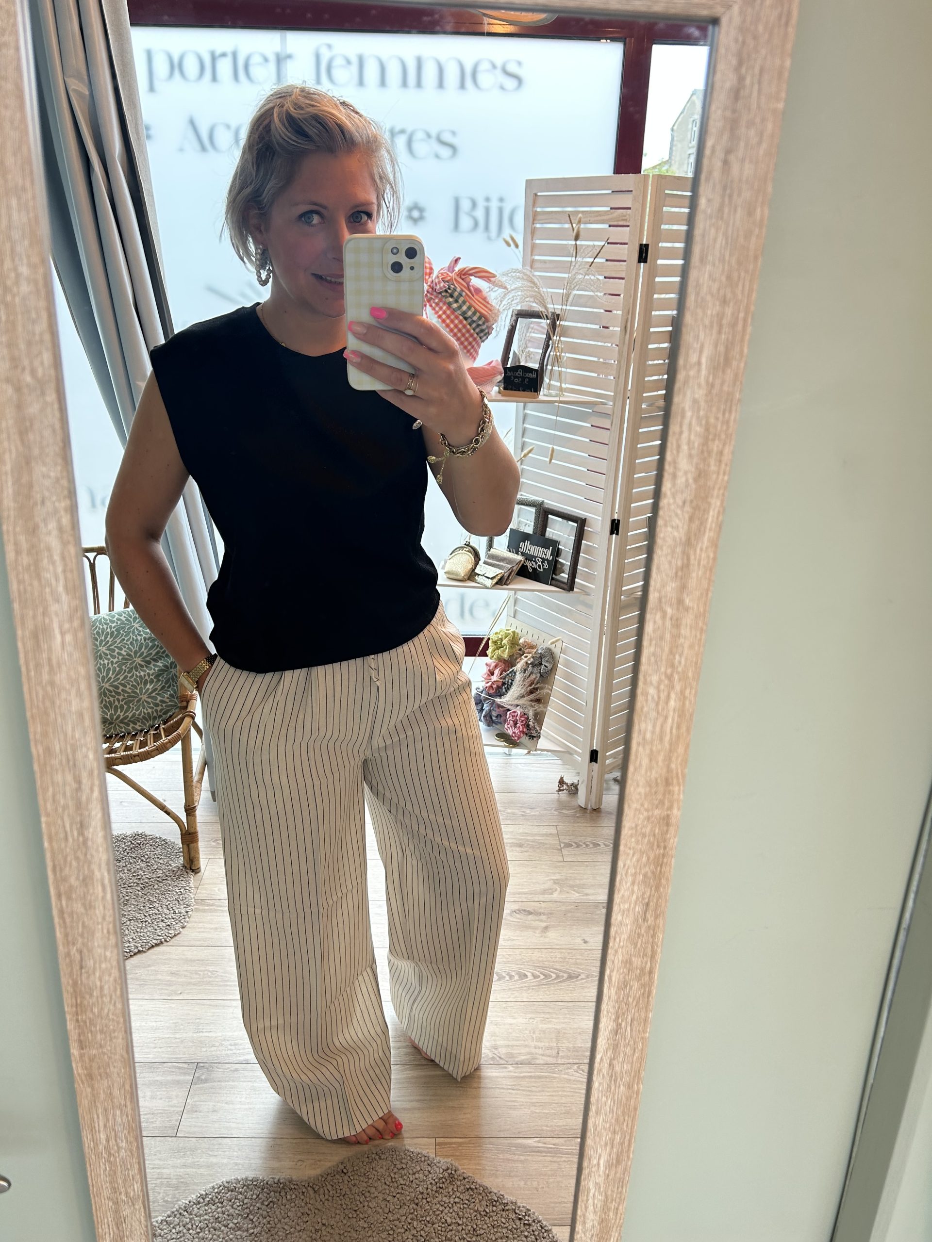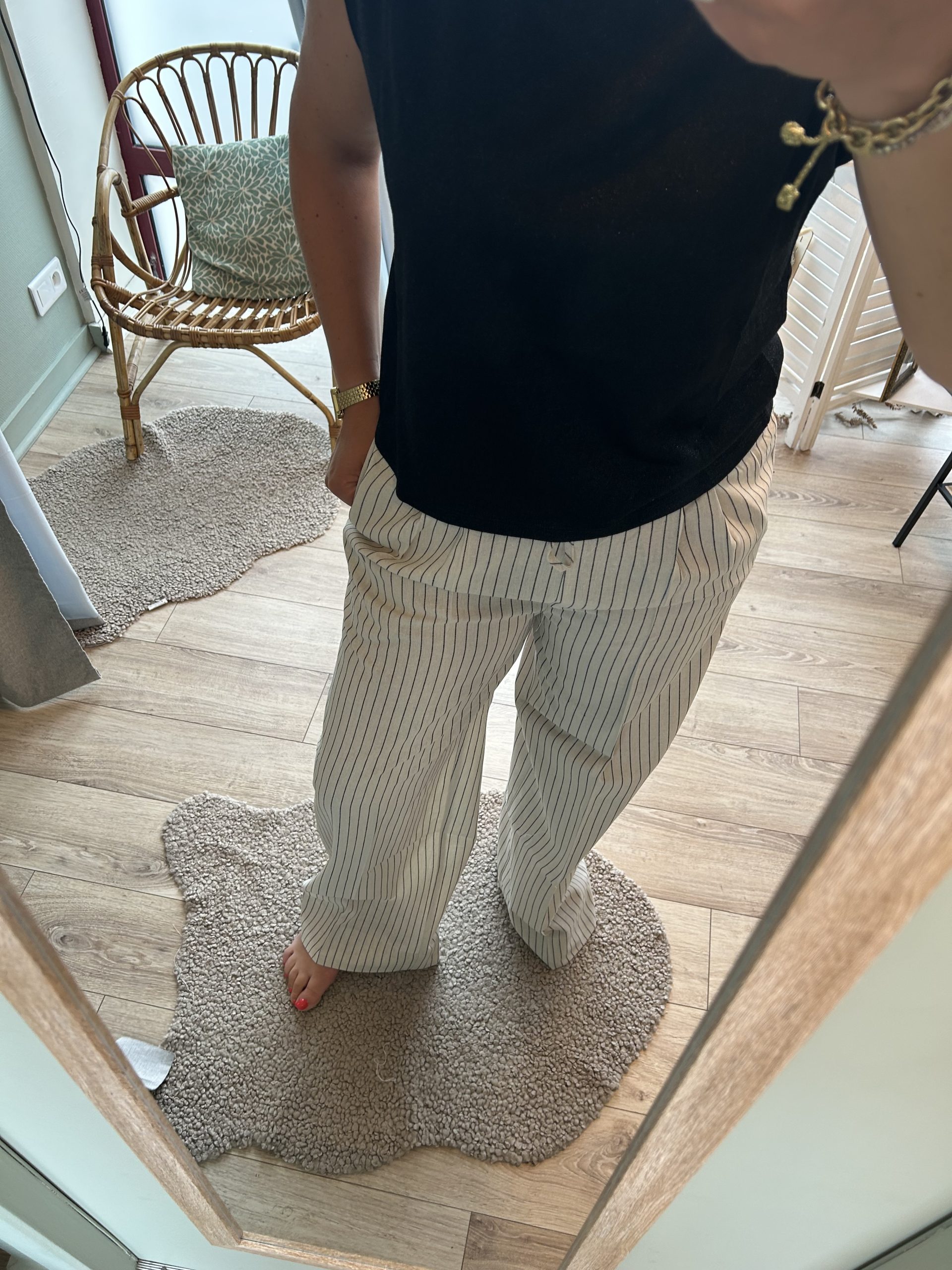 Pantalon écru a rayure noir , taille élastique , coupe droit large