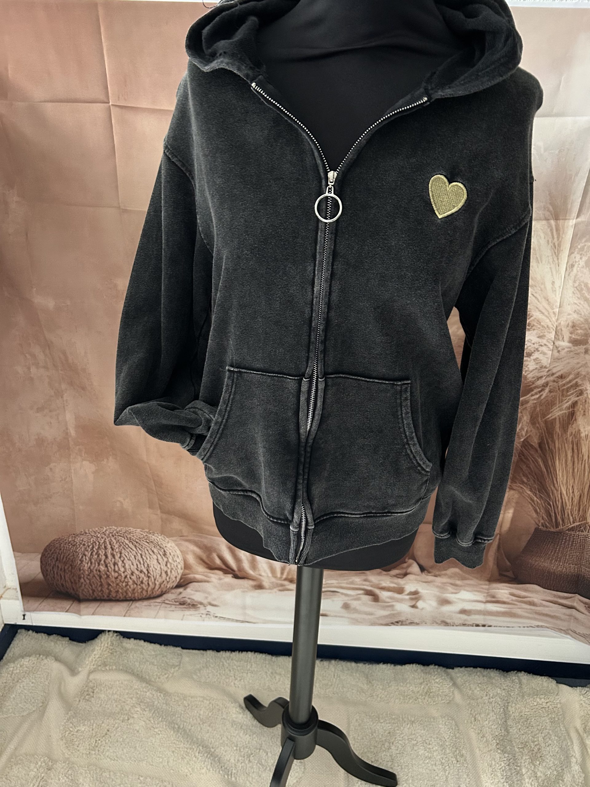 Sweat à capuche et fermeture, avec poches.